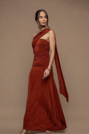 Fatale terracotta scarf dress